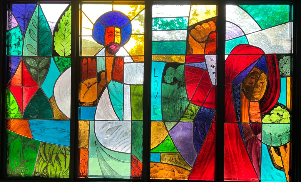 Importantly, this is our first stained-glass at Holy Communion showing Biblical characters, Jesus and Mary Magdalene, as Black. The rest of the planned windows will also feature people of color in Biblical roles.