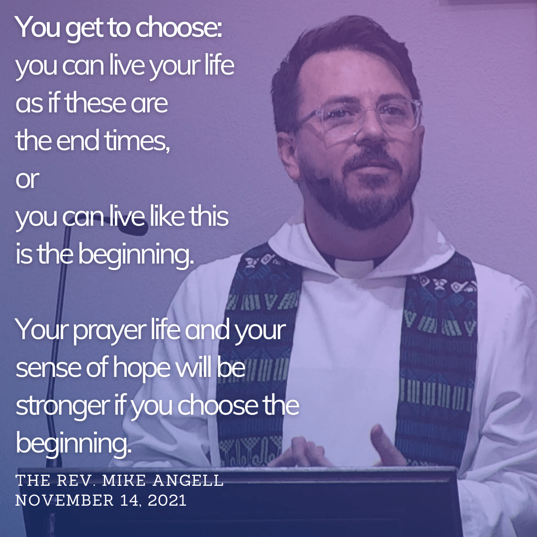 Even in the midst of tragedy, Jesus says, keep your heads up, look for the Kingdom of God being born. Justice is coming. Mercy is coming. Compassion is coming. Justice, Mercy, Compassion, love, that is the prophecy of Jesus.